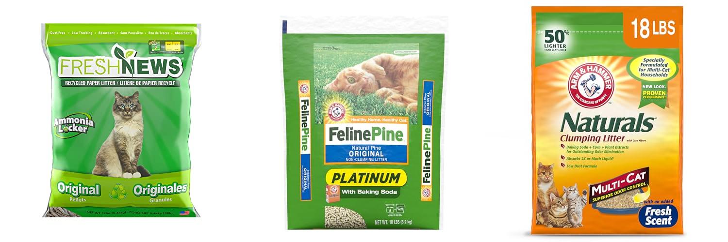 Alternative litters use different materials. Here are some popular choices: