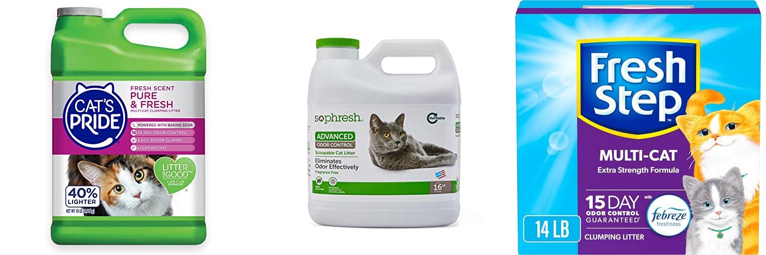 A: Silica gel litter and some clumping clay litters are known for good odor control.
