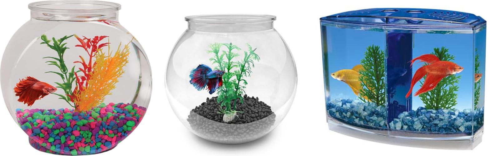 The Newpol Mini Plastic Aquarium Fish Bowls (0.8 Gallon / 3L) are small, round tanks. They are made for small fish like bettas and guppies. The bowls come with plastic plants and pretty stones. They are made of clear, strong plastic. You can see the fish from all sides. This tank is a good gift for kids and friends.