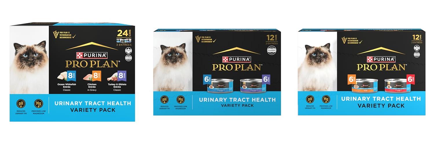 3. Purina Pro Plan Urinary Tract Wet Cat Food Variety Pack Urinary Tract Health Beef and Chicken Entrees – (Pack of 12) 5.5 oz. Cans