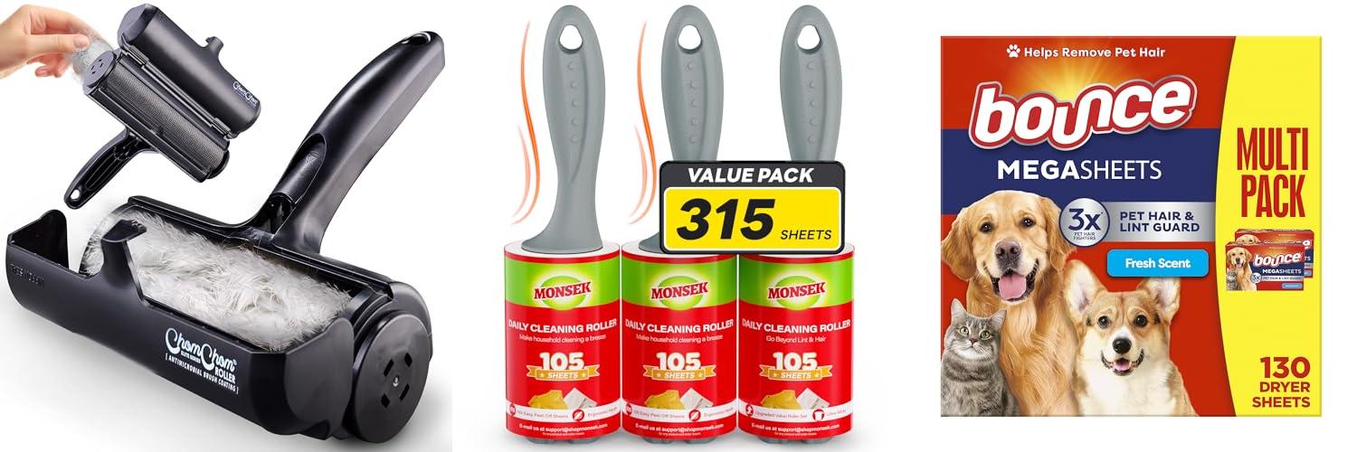 - Lint Rollers: These are sticky sheets that grab hair. They are easy to use and disposable.