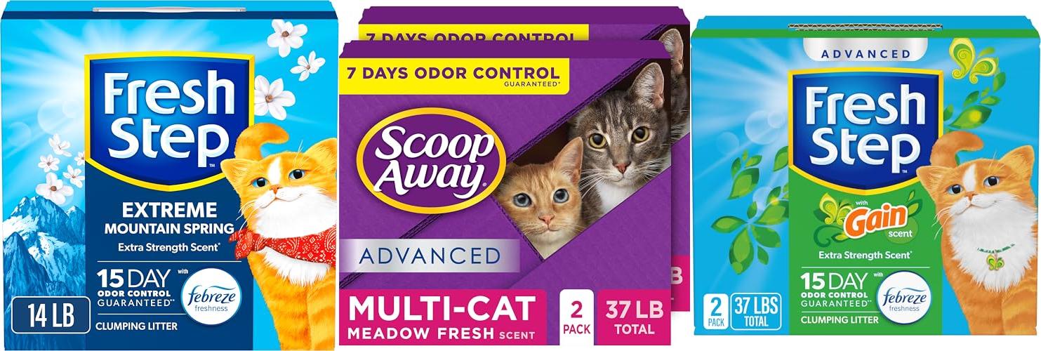 Tired of smelly litter boxes? Fresh Step Extreme Clumping Litter with Febreze Freshness, Mountain Spring Scent is here to help! This clumping cat litter promises to keep your home smelling fresh. It comes in a 14 lb. box. This litter uses Febreze and special technology to fight odors. It aims to make scooping easier and keep your cat happy.