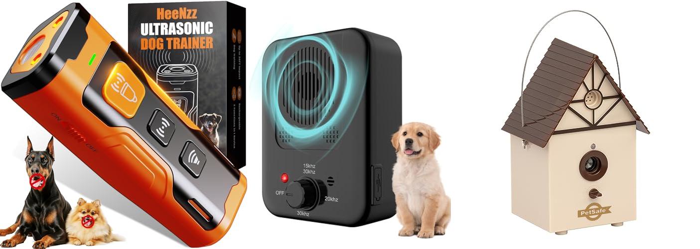 A: These devices use sound or ultrasonic sound to stop a dog from barking. The sound annoys the dog, and it stops barking.