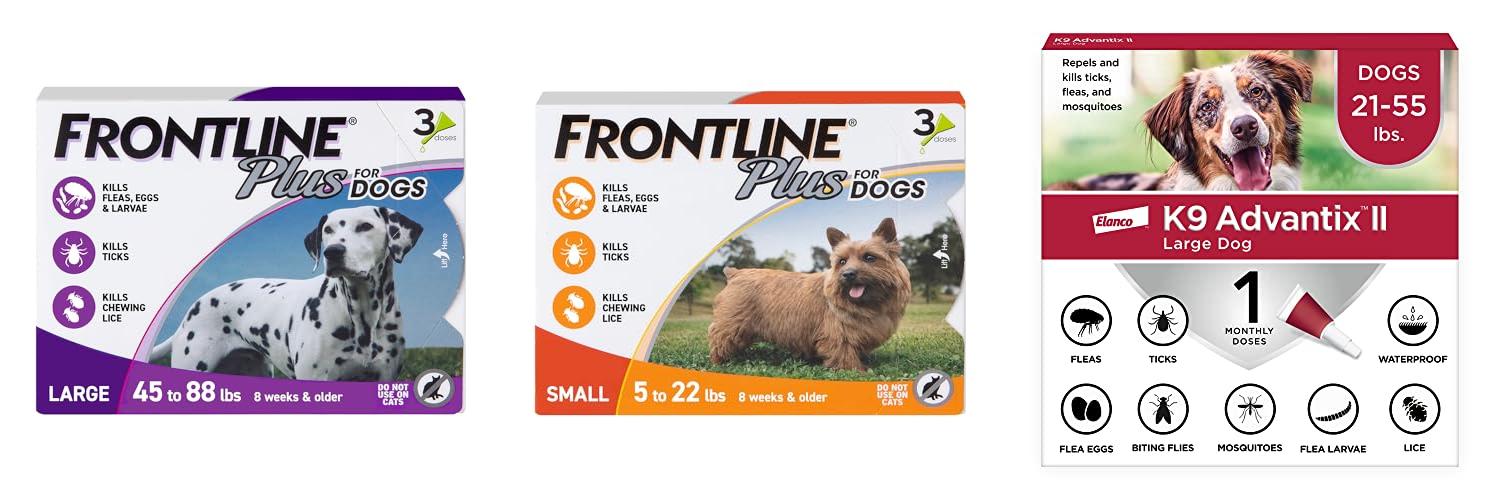 1. FRONTLINE Plus Flea and Tick Treatment for Large Dogs Up to 45 to 88 lbs. 3 Treatments