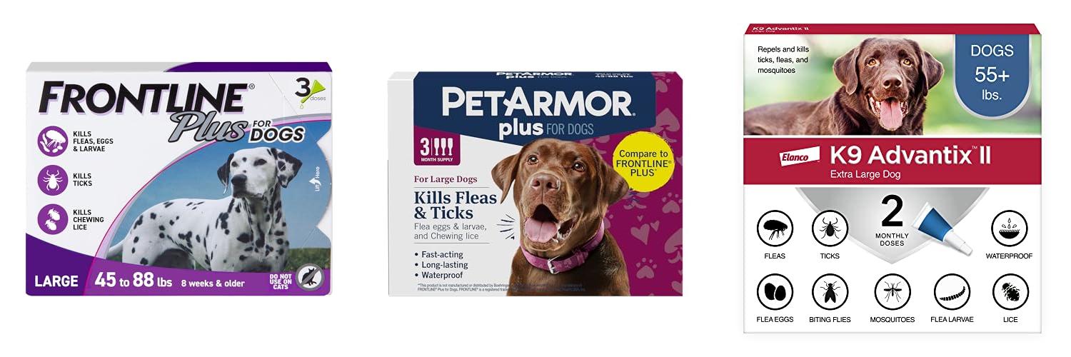 1. FRONTLINE Plus Flea and Tick Treatment for Large Dogs Up to 45 to 88 lbs. 3 Treatments