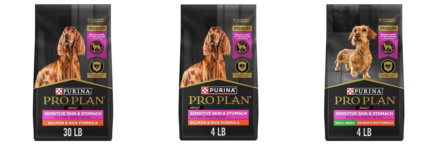 Does your dog have sensitive skin or a tummy that’s easily upset? Then check out Purina Pro Plan Sensitive Skin and Stomach Salmon & Rice Formula! This 30-pound bag of dry dog food offers a complete and balanced diet designed for adult dogs with digestive sensitivities. Previously known as FOCUS Sensitive Skin and Stomach, this formula uses high-quality ingredients to support your furry friend’s health and well-being. It’s packed with nutrients to keep your dog happy and healthy.