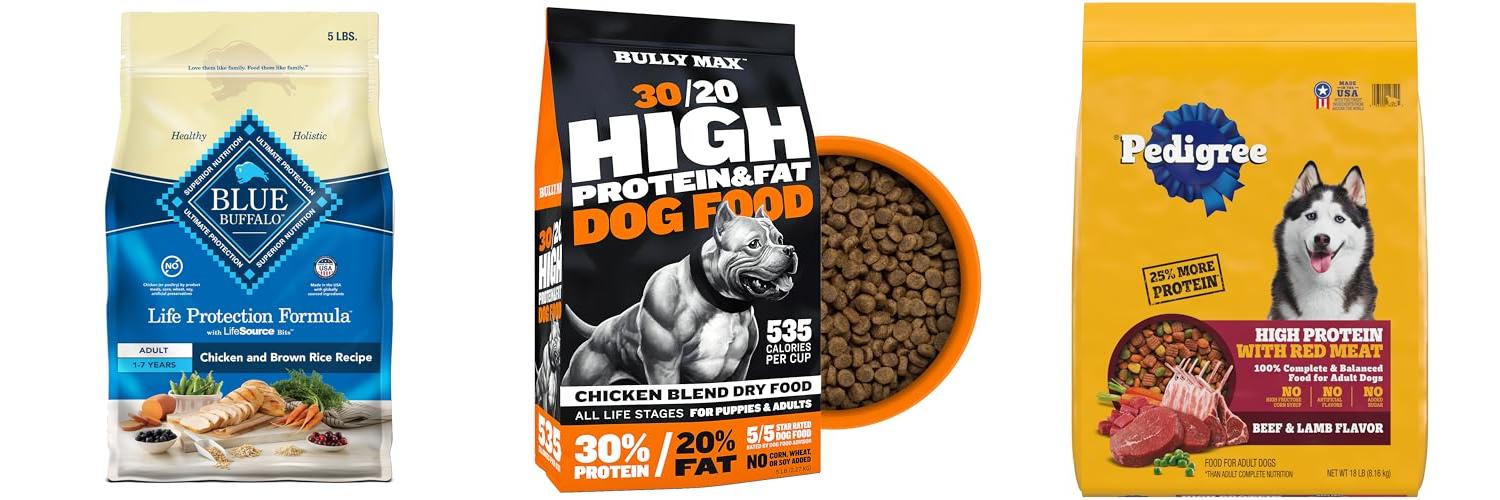 You want dog food with specific features. These help your Pitbull thrive.
