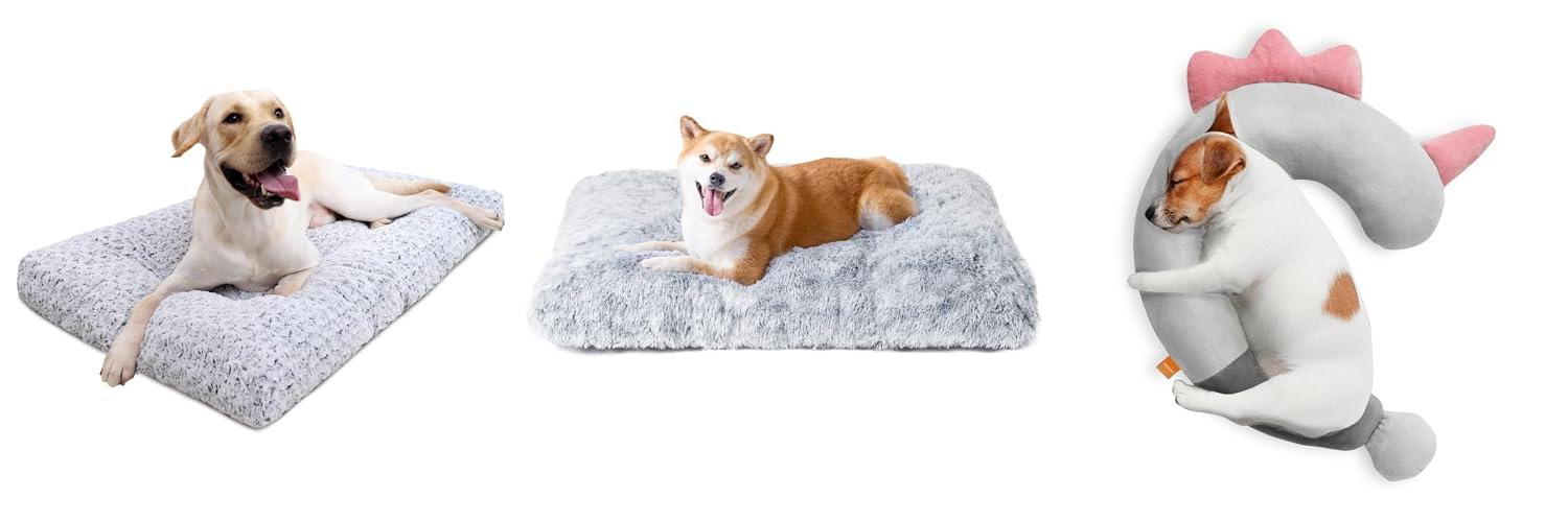 The EHEYCIGA Fluffy Dog Crate Bed is designed to give your dog comfort. It has a plush faux fur surface and is made for large dogs. This bed aims to be calming and reduce anxiety. It’s also washable and has a non-slip bottom. It can be used in crates, on floors, and in cars.