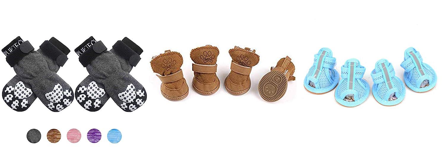A: You can find dog shoes at pet stores. You can also buy them online. Amazon and Chewy are good places to start.
