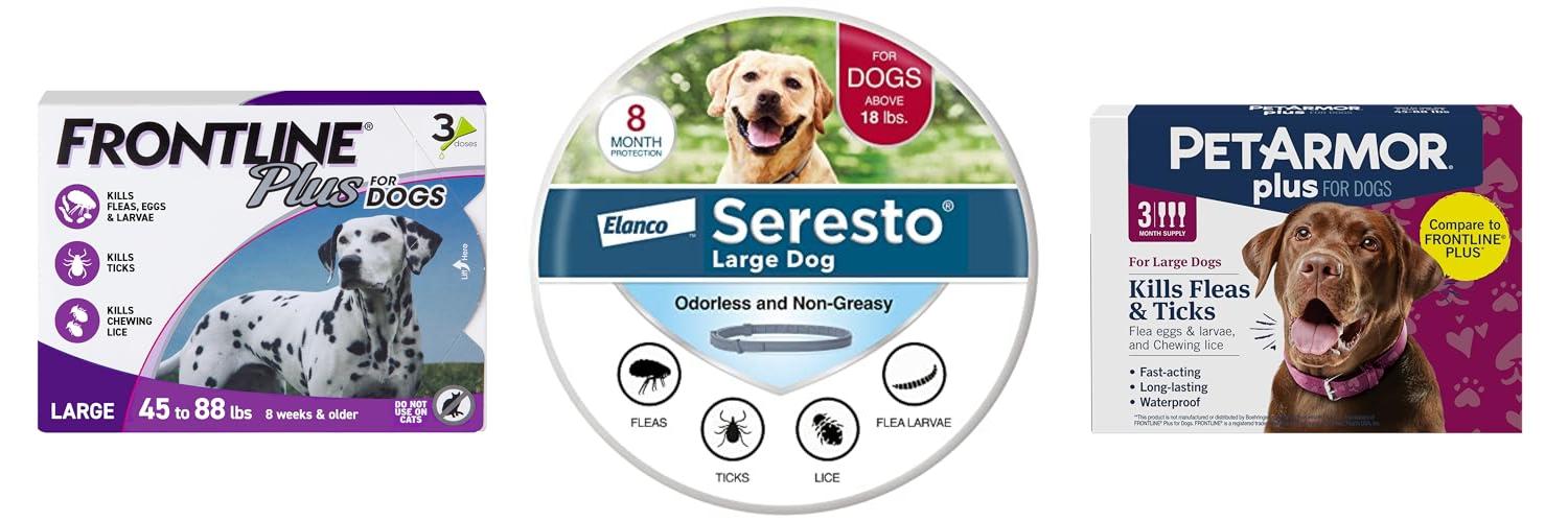 1. FRONTLINE Plus Flea and Tick Treatment for Large Dogs Up to 45 to 88 lbs. 3 Treatments