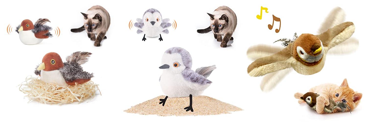 • Realistic sounds! The sandpiper chirps to get your cat’s attention.