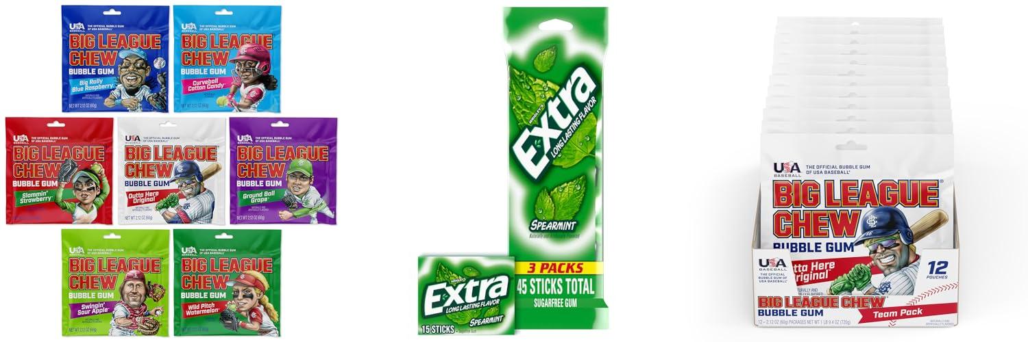 4. Big League Chew Original Bubble Gum 3-Pack – 2.12oz Packets – Original Baseball Gum – Big League Chew Baseball Candy Set for Treats