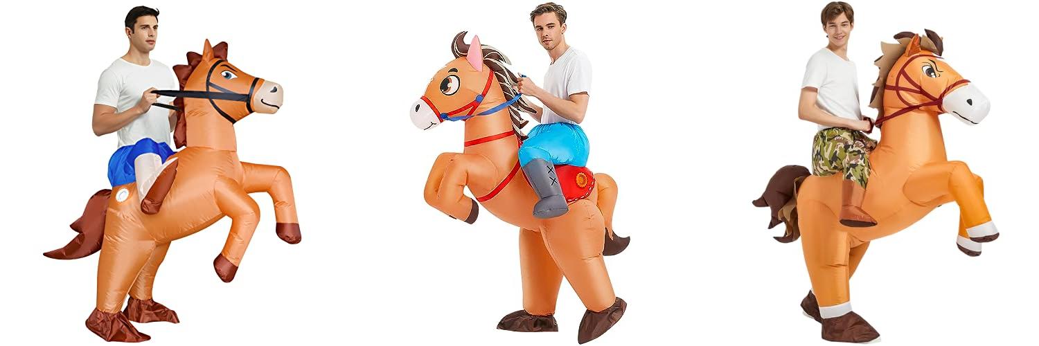 1. Inflatable Costume Adult Ride On Horse Costumes Cowboy Air Blow Up Funny Riding Horse Suit for Men Women Halloween
