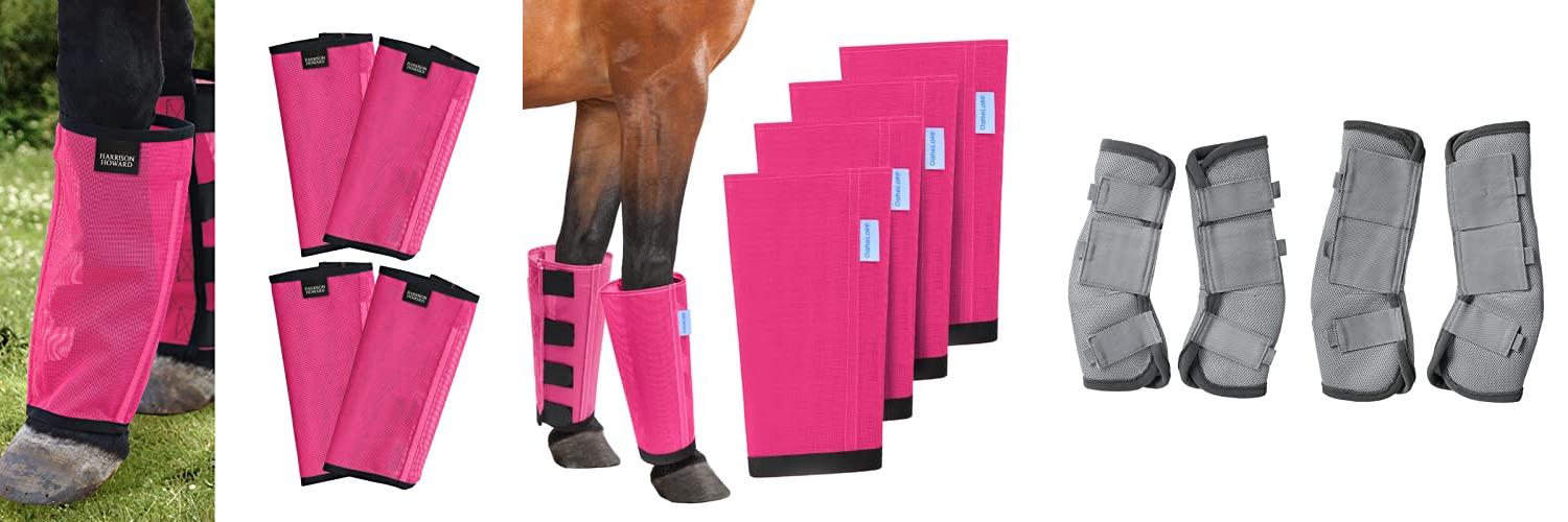 1. Harrison Howard Loose Fitting Fly Boots UV-Protective Extra Tough Mesh Ventilated Four Fasteners Stay-on Design Protect Horse Legs & Stomp-Reducing Set of 4 Magenta Large