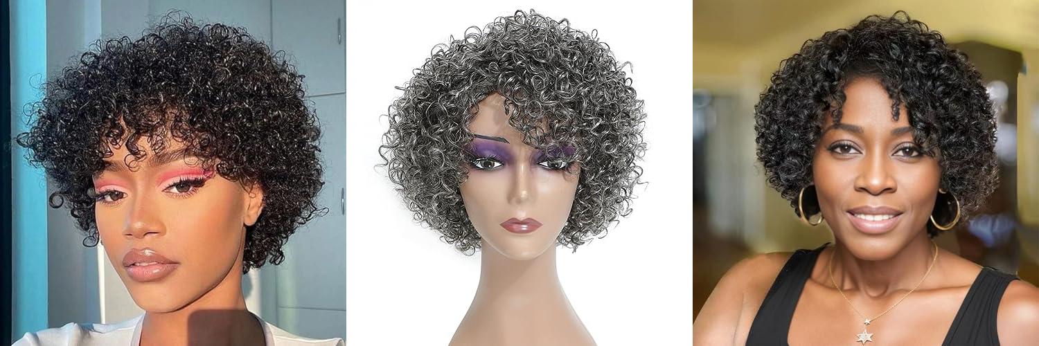 Looking for a stylish and easy-to-wear wig? The HUA Grey Glueless Wig is a fantastic choice for Black women seeking a natural, short curly look. Made with 10A grade Brazilian Human Hair, this wig features a beautiful salt and pepper blend, with 40% grey and 60% black. It’s designed for comfort and a realistic appearance, making it a great option for middle-aged and older women.