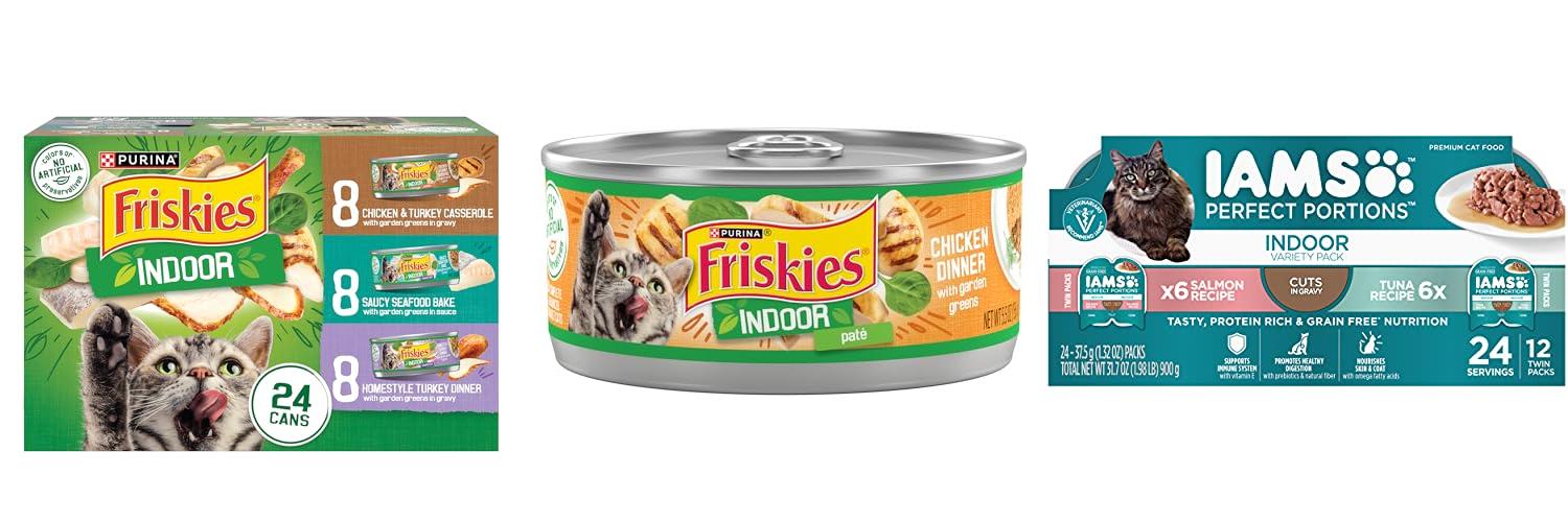 This Purina Friskies food is a good choice for indoor cats. It offers a complete and balanced meal your cat will enjoy.