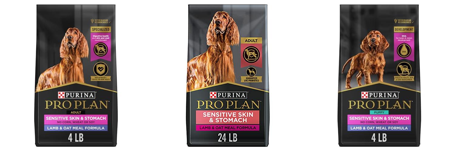 1. Purina Pro Plan Sensitive Skin and Sensitive Stomach Dog Food Lamb and Oat Meal Formula – 4 lb. Bag