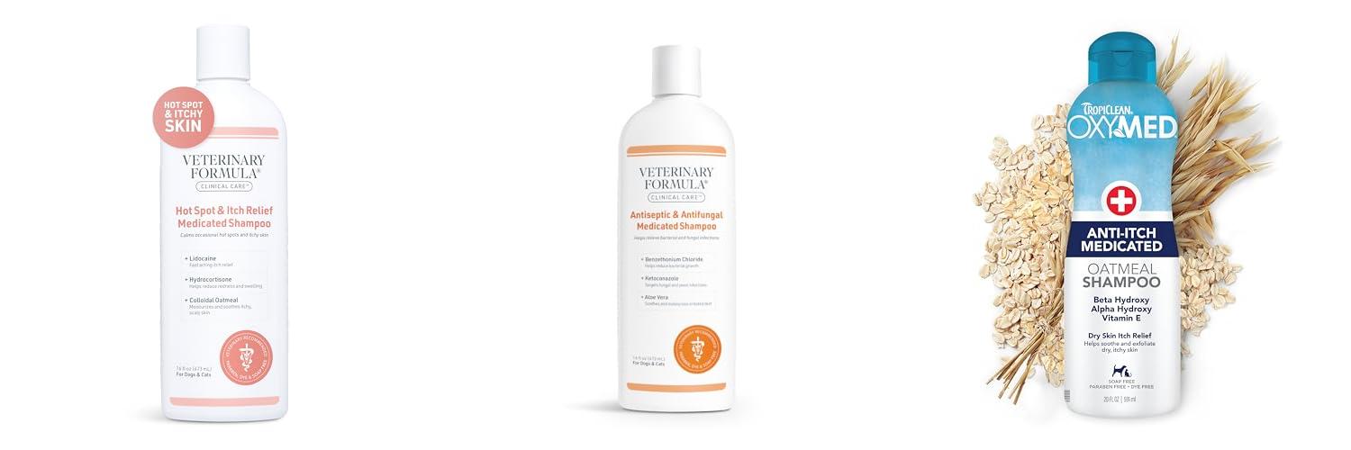 1. Veterinary Formula Clinical Care Hot Spot & Itch Relief Medicated Shampoo for Dogs and Cats 16oz – Helps Alleviate Sensitive Skin