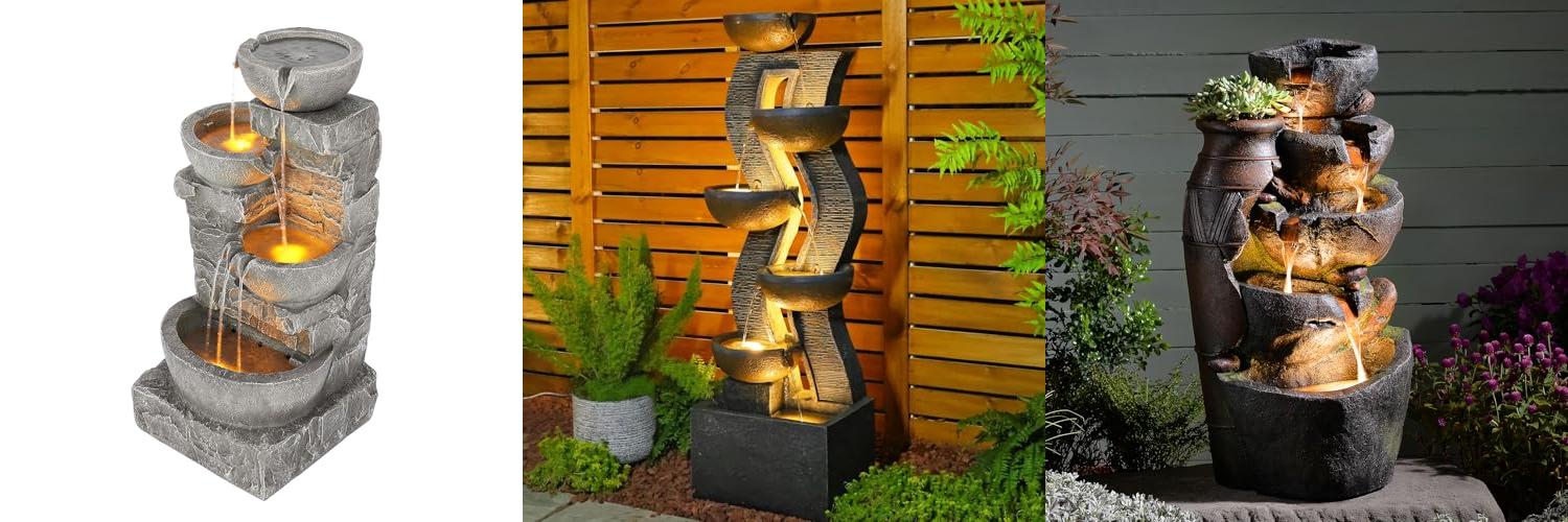 - Lighting: Many fountains come with built-in lights. These can make your fountain look magical at night.