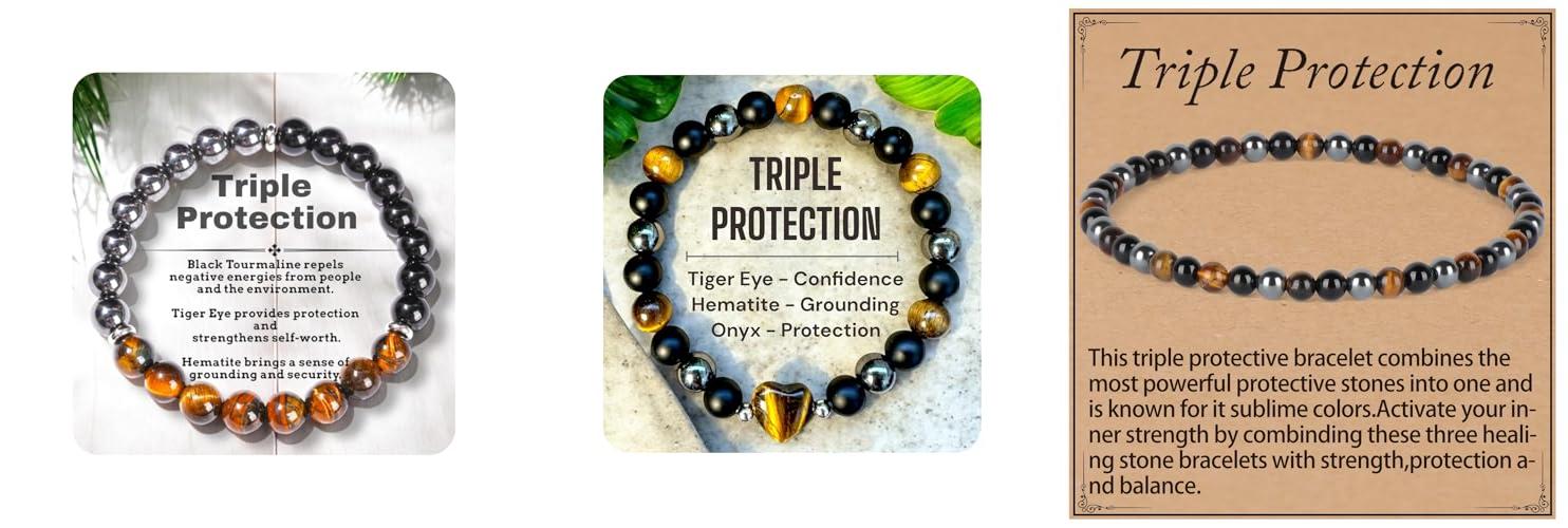 Looking for a stylish bracelet that also brings positive energy? The HASKARE Triple Protection Bracelet might be just what you need. This bracelet combines three powerful stones: Tigers Eye, Black Obsidian, and Hematite, all in 8mm beads. It’s designed for both men and women and is marketed as a way to bring luck and prosperity.
