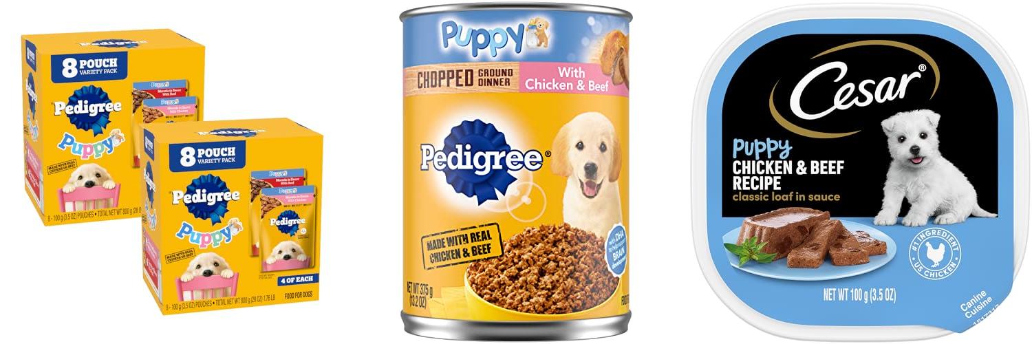 2. PEDIGREE CHOPPED GROUND DINNER Puppy Canned Soft Wet Dog Food With Chicken & Beef