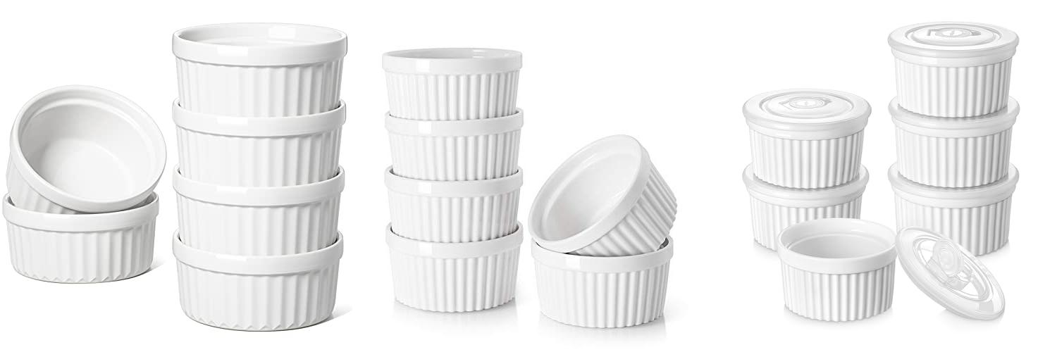 • 4 oz ramekins: These are great for small desserts like crème brûlée, individual soufflés, or even for serving dips and sauces. They are perfect for single servings.