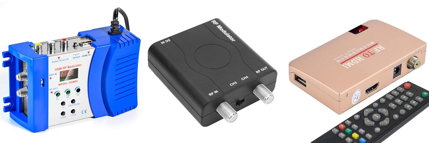 A: An RF HDMI modulator takes your HDMI video and audio and turns it into a radio signal that a TV can receive through its antenna input.
