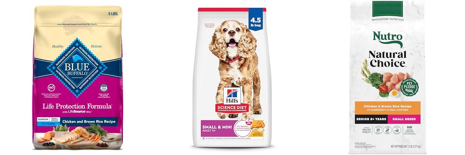 Nutro Natural Choice Senior Small Breed Dry Dog Food seems to be a good choice for senior dogs. It focuses on important health needs. You should check with your vet to make sure it is right for your dog.