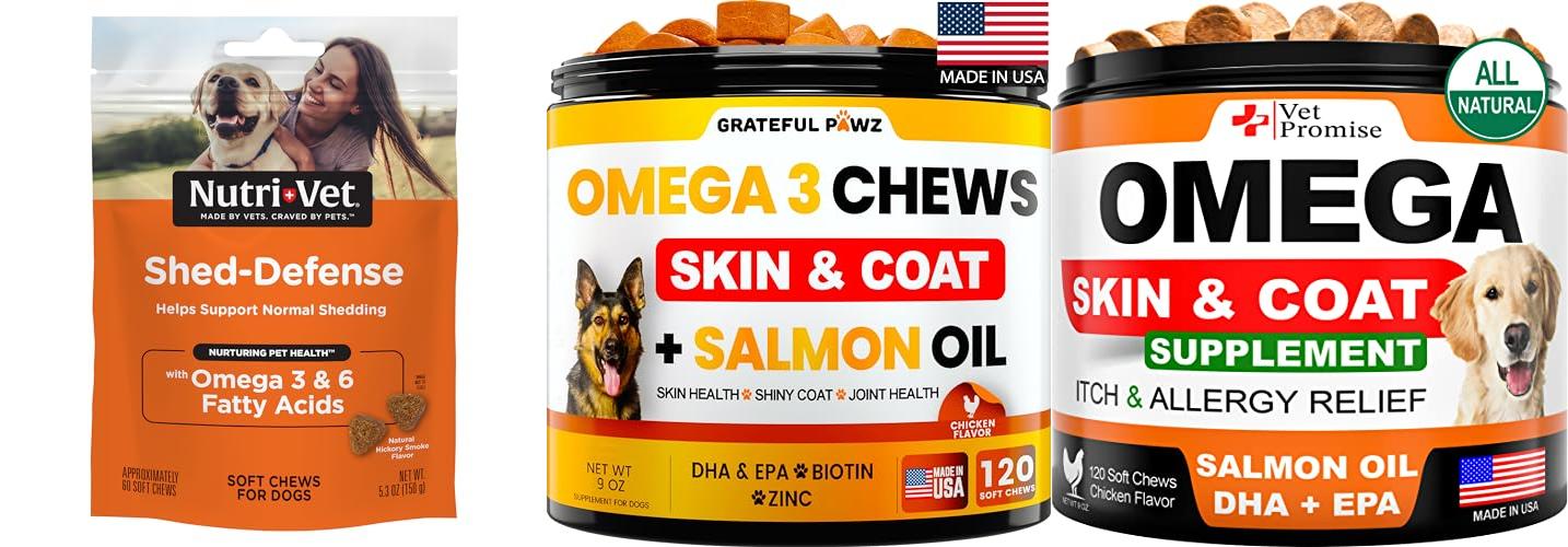 - These chews are a great skin and coat supplement for dogs. They contain premium fish oil.